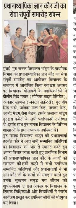 Farewell Function of Mrs. Gyan Kaur Banga Head Mistress of Guru Nanak English Primary School, Bhandup